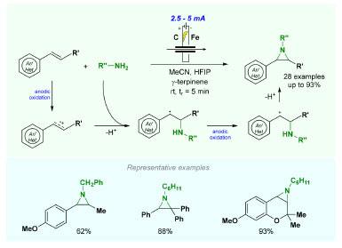 ![]() Scheme 11. Continuous-flow procedure for the electrochemical aziridination