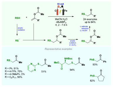 ![]() Scheme 13. Electrochemical synthesis of α-sulfenylated ketones