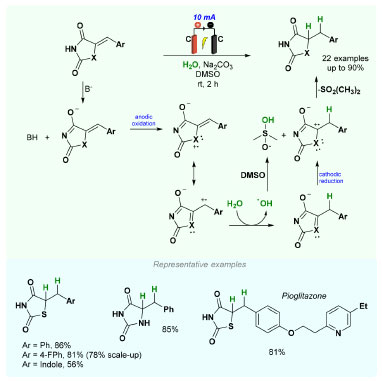 ![]() Scheme 15. Electrochemical reduction of 5-benzylidene thiazolidine- 2,4-diones derivatives