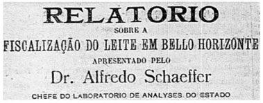 Diversos trabalhos relacionados com a inspeção das fábricas de laticínios do Estado foram feitas pelo químico alemão, bem como o controle de produção de seus derivados, contribuindo para a evolução da indústria leiteira de Minas Gerais, que àquela época, ao lado do café, eram a parte mais substancial da economia do Estado. Em 1912, 70% das análises realizadas no laboratório foram em amostras de leite.6 A relevância econômica do produto, aliada ao fato de Schaeffer ser um especialista na área, devem justificar essa prioridade. Em 1913, Schaeffer publica o "Relatório sobre a Fiscalização do Leite em Bello Horizonte"14 (Figura 4).