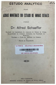 ![]() Figura 8. Publicação resultante das análises das águas minerais de Minas Gerais realizadas por Alfred Schaeffer, edição de 1923 (fonte: Biblioteca Universitária UFMG)17