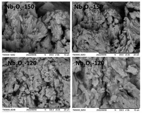 ![]() Figure 3. SEM images of the Nb2O5 samples