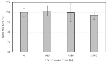 ![]() Figure 1. Retained MFI test results compared with virgin sample test result after UV fluorescent exposure