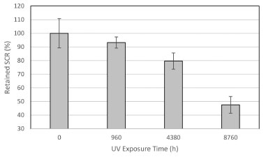 ![]() Figure 3. Retained SCR test results compared with virgin sample test result after UV fluorescent exposure