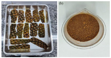 ![]() Figure 2. Pineapple peel waste (a) and dried pineapple peel powder (b)