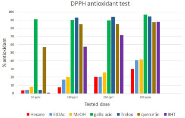 ![]() Figure 3. DPPH quenching test for the organic extracts of B. virgilioides roots