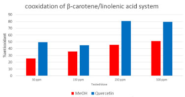 ![]() Figure 4. Autooxidation of β-carotene inhibition for the organic extracts of B. virgilioides roots