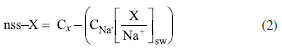 Chloride, sodium and magnesium The relationships between the concentrations of Cl- and Na+ in BP were statistically significant (Spearman rank test, p < 0.01) for the four sampling sites (coastal urban: r (correlation coefficient) = 0.98, n = 36; coastal periurban: r = 0.97, n = 29; lower montane forest: r = 0.86, n = 35 and montane forest: r = 0.95, n = 37), which strongly corroborate the sea-salt aerosols as the main source of both ions. Combining these results with those of other studies carried out in different locations in the state of Rio de Janeiro, the relationship between the concentrations (Figures 3a-3b), and the deposition fluxes (Figures 3c-3d), of these two ions and the distance from the Atlantic coast (along S-N direction) is quite evident. In addition to distance from the ocean, the variations among sites are controlled by other factors such as altitude of the sampling site, local relief and mesoscale atmospheric circulation.