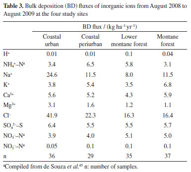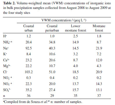| Major inorganic ions in bulk precipitation from coastal urban and montane atlantic forest sites in southeastern Brazil |