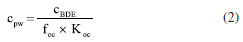Sampling and sample preparation A boat, kindly provided by the Environmental Military Police Battalion (BPMA/PMDF), was used to access the sampling points. Samples were then collected from the upper sediment layer using a van Veen grab sampler. After retrieval, the dredge was opened onto a plastic tray to allow for the removal of branches, glass, plastics, and other larger impurities. Using a spatula, the sediment was transferred to pre-labeled collection bags and stored in a cooler box for transport to the laboratory, where it was preserved at 4 °C until drying under ambient temperature and airflow in a laboratory hood. The analytical methods employed in this study were previously developed and validated and are succinctly described elsewhere.36 Briefly, 3.000 g of dried sediment samples were transferred to previously cleaned glass tubes containing 10 mL of an acetone:n‑pentane (1:1 v/v) mixture. The suspensions underwent sonication for 5 min and were subsequently centrifuged for 5 min at 1,000 × g. The resulting suspension was centrifuged for additional 5 min at 1000 × g, and the supernatant was then transferred into a 250 mL flat-bottomed flask. This procedure was repeated five times and a composite was produced. Then, iso-octane was added as a solvent keeper (1.0 mL), and the extract was rotary-evaporated to approximately 2 mL. Interferences were suppressed by eluting the extract with 50 mL of n-pentane through a 30-cm column packed with acid, basic, and neutral silica gel (3, 2, and 3 g, respectively), as well as with anhydrous sodium sulfate. After re-concentration to 1.0 mL of the keeper, the extracts were treated with metallic copper strips for 24 h in the dark at 4 °C to mitigate interferences from sulfur compounds during the quantification analyses. Quantification of PBDE congeners Polybrominated diphenyl ether (PBDE) concentrations were assessed by gas chromatography with an electron capture detector (Shimadzu GC 2010 Plus, Kyoto, Japan). A volume of 2.0 µL of the extract was injected in splitless mode (split ratio of 1:20), using a purge time of 1 min and a purge flow of 3 mL min-1, all maintained at a constant temperature of 270 °C. Separation was achieved using a SLB-5MS capillary column (30 m × 0.25 mm × 0.25 μm film thickness, Supelco, Bellefonte, USA) with helium as the carrier gas. The oven temperature program was initiated at 100 °C (held for 2 min), followed by a ramp to 160 °C at a rate of 15 °C min-1, then to 280 °C at 4 °C min-1 (held for 10 min), and finally to 300 °C at 10 °C min-1 (held for 10 min), resulting in a total run time of 58 min. Quantification of all target PBDE congeners was performed using external calibration curves in triplicate, with retention time used as a confirmation parameter. Limits of detection (LOD) and quantification (LOQ), chromatographic retention times and analytical recovery for the PBDE congeners are available in Table 1S presented in the Supplementary Material. PBDE distribution and risk assessment The investigation of PBDEs distribution in the studied environment, according to their fugacity, was carried out using the equilibrium criterion model (EQC model) at its level I.37 This level involves assessing the equilibrium distribution or steady state in a closed environment and suggests the phases or environmental compartments to which a chemical will partition. To evaluate the distribution of PBDEs in the investigated area, a model input was generated, comprising chemical and environmental properties, along with emissions data. The chemical properties included molar mass, water solubility, vapor pressure, melting point, and octanol/water partition coefficient. As for environmental properties, a standard EQC environment model was adopted, incorporating predetermined volumes and densities for air, aerosol, water, suspended solids, fish, soil, and sediment. Additionally, the model accounted for the lipid fraction of fish and the organic carbon of suspended solids, soil, and sediment. All data employed in the EQC model, level I, are shown in Tables 2S and 3S of the Supplementary Material. Hazard quotients (HQs) were calculated to evaluate the ecological risk posed by the detected PBDEs in the sediment environment, using Equation 1. In this equation, MEC represents the measured environmental concentration (ng L-1) of each congener. The predicted no‑effect concentration (PNEC) is the concentration below which acute or chronic adverse effects in the environment are not expected to occur and, in the present study, was obtained using the ECOSAR software38 for each congener based on LD50 values for Daphnia magna. In this case, owing to the limited availability of toxicity data for PBDEs in sediment, the values obtained with ECOSAR consider the water/sediment partitioning of PBDEs and toxicity data for the water column. ![]() Given that the partitioning between water and sediment depends on the organic carbon fraction within the matrix, MEC values were estimated in interstitial water employing the equilibrium partitioning approach described elsewhere39 and presented in Equation 2. ![]() The estimated PBDE concentration in the pore water is represented by cpw (ng L-1), whereas cBDE is the measured sediment concentration, foc is the fraction of organic carbon in the sediment sample according to the ECQ model, level I (0.04), and KOC is the partition coefficient for sediment organic carbon, predicted using the Advanced Chemistry Development software (ACD/Labs Percepta Platform). The values of all parameters used to calculate HQ in this study are shown in Table 4S, in the Supplementary Material.