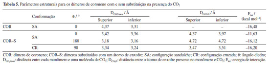 | Estudo computacional da influência de CO2 no empilhamento-π de monômeros de coroneno substituídos com enxofre Computational study of the influence of CO2 on the π-stacking of sulfur-substituted coronene monomers |