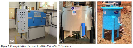 O Laboratório de Negócios Midas foi um programa de pré-aceleração executado pelo Escalab criado para o INCT Midas. O objetivo foi avaliar o potencial mercadológico de tecnologias desenvolvidas nos 32 laboratórios dos pesquisadores do INCT Midas de diferentes instituições do Brasil. Foram inscritas 41 tecnologias e selecionadas 10 que, durante os 3 meses do programa, desenvolveram modelos de negócios, validaram suas premissas com empresas no mercado e buscaram investidores. Ao final, duas tecnologias foram selecionadas para o escalonamento e prova de conceito. A Zaoki desenvolveu um catalisador à base de nanofibras de carbono para purificar biogás e, para tal, foi necessário a construção de um reator contínuo com capacidade de 5 kg h-1 para operar até 1000 ºC em atmosfera controlada (Figura 2a). Este trabalho resultou em uma dissertaçao de mestrado, patente, publicações e testes preliminares realizados em uma fazenda de suinocultura em Minas Gerais. A outra tecnologia chamada Iara, consiste em um sistema de tratamento de água para ser instalado e operado por comunidades em situação crítica de fornecimento de água potável. Foram feitas duas plantas, de 1000 L elétrica e uma planta manual de 50 L, além de uma dissertação defendida (Figuras 2b e 2c). Além disso, esse projeto foi selecionado em um edital interno da UFMG para auxiliar no desenvolvimento da tecnologia.