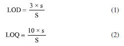 Curvas analíticas e avaliação do desempenho do método As curvas analíticas para BTEX foram elaboradas em triplicata, utilizando o método de padronização externa, a partir de soluções intermediárias de BTEX em concentrações de 500 e 2500 µg L-1. A curva analítica foi preparada em 5,00 mL de soluções aquosas em cinco níveis de concentração, contendo 4% de metanol para respeitar o teor de solvente no processo de extração dos BTEX: 1,0; 5,0; 25,0; 50,0; e 75,0 μg L-1. Ressalta-se que esses padrões foram preparados diretamente em frascos para headspace de 20 mL, com septo de PTFE não perfurado. Para avaliar a precisão e exatidão do protocolo de extração de BTEX, foram realizados ensaios de recuperação em pescado liofilizado. Em 1 g de pescado foi realizado fortificação com 62,5 µL de solução padrão de BTEX (80 mg L-1), seguida da adição de 10 mL de metanol (MeOH), proporcionando concentração de 5,0 µg g-1. O frasco foi fechado e submetido a agitação por vórtex por 1 min e após a separação de fase, uma alíquota de 200 µL foi transferida para outro vial e o volume completado para 5 mL com água ultrapura. As curvas de HPA foram preparadas em hexano, em sete níveis de concentração: 5,0; 10,0; 25,0; 50,0; 75,0; 125,0 e 250,0 μg L-1. O controle e garantia de qualidade (QA/QC) dos protocolos de extração para os HPA incluiu a adição de padrões sub-rogados em concentração de 200 ng g-1 em todas as extrações, além de ensaios em branco (n = 5) e análise dos solventes utilizados. Adicionalmente, foi realizado ensaio de recuperação em triplicata com a amostra B47 com os HPA em concentração de 200 ng g-1. A fortificação foi realizada com 100 µL de solução dos HPAs em concentração de 0,50 mg L-1, resultando na concentração de 200 ng g-1. Os limites de detecção (LOD) e quantificação (LOQ) foram calculados com base nos parâmetros das curvas analíticas: ![]() onde s é estimativa do desvio padrão dos interceptos e S a média das inclinações. De posse desses valores, os limites considerando a massa das amostras foram estimados com base no padrão de menor concentração das curvas analíticas. Conversão da concentração em massa seca para massa úmida Segundo a literatura,19 a carne de peixe é composta por 66-81% de água, 16-21% de proteína, 1,2-1,5% de minerais, 0,2-25% de gordura e 0-0,5% de carboidratos. Neste estudo, entre as espécies estudadas, o teor de umidade também se encontra na faixa mencionada.20-24 Portanto, para este trabalho foi considerada umidade de 75% para todas as amostras, com o objetivo de converter os valores obtidos de concentração em massa seca para massa úmida, tornando possível a comparação dos dados obtidos com os dados de concentrações de níveis preocupantes disponibilizados pela ANVISA.14 O cálculo de conversão foi realizado considerando a equação abaixo: ![]()