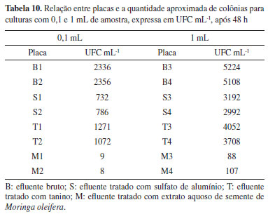 Por meio da Tabela 10 é possível verificar a relação entre placas e unidades formadoras de colônias (UFC) por mL de amostra após 48 h de incubação.
