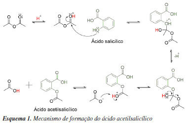 Caroline I. SilveiraI,II; Samuel A. PereiraI,II; Victoria B. V. de LeonI; Jeanifer T. CamachoI; Amanda F. LeitzkeI; Rogério A. FreitagI; Claudio M. P. de PereiraI I. Laboratório de Inovação em Química (InnovasChem), Centro de Ciências Químicas, Farmacêuticas e de Alimentos (CCQFA), Universidade Federal de Pelotas, 96010-900 Pelotas - RS, Brasil Recebido: 22/03/2024 *e-mail: brunondrosa@gmail.com Acetylsalicylic acid (ASA) synthesized in the practical classes of experimental organic chemistry is generally discarded after the classes. Thus, the objective of this work is to find an alternative application for ASA and to promote awareness about the recycling of chemicals in educational and research environments. In addition, it explores the subsequent application of this synthesized ASA in the creation of powdered developers for latent fingerprints. The adopted methodology included the recrystallization of the previously synthesized ASA, followed by the development of three distinct formulations of powdered developers, which include ASA, lignin, and methylene blue. Subsequently, these powders were used to identify latent fingerprints, demonstrating that they are promising substances for such applications. INTRODUÇÃO O ácido acetilsalicílico, popularmente conhecido como Aspirina®, é um dos primeiros medicamentos sintéticos documentados na história e amplamente utilizado ainda nos dias atuais. Inicialmente empregado como anti-inflamatório, atualmente é aplicado em novas terapias devido aos progressos na pesquisa.1 A sua origem iniciou através da casca de salgueiro contendo salicina como analgésico. A síntese do ácido salicílico (AS) em 1859 por Hermann Kolbe foi um marco, embora seu uso farmacológico fosse limitado devido a efeitos colaterais. Felix Hoffmann alcançou a primeira síntese estável e pura de ácido acetilsalicílico em 1897, na qual foi patenteada pela Bayer em 1900 se tornando o analgésico mais popular do mundo. Seu potencial anticoagulante foi descoberto em 1953, e seu mecanismo de ação em 1971, rendendo aos pesquisadores o Prêmio Nobel.1 A síntese de ácido acetilsalicílico (AAS) é uma atividade comum em aulas de química orgânica experimental. Nessas aulas os alunos são expostos ao mecanismo reacional subjacente à formação do composto e também adquirem conhecimentos sobre técnicas de laboratório essenciais, incluindo o processo de refluxo e os princípios da filtração.2,3 A síntese do AAS envolve a reação de acetilação do ácido salicílico, na qual um grupo acetila é adicionado à molécula. O mecanismo da formação do ácido acetilsalicílico está representado no Esquema 1. Primeiramente, o anidrido acético é protonado, formando um carbocátion que aumenta a sua reatividade. Em seguida, acontece a adição da hidroxila fenólica a carbonila ativada. Então, a remoção do hidrogênio estabiliza o oxigênio positivamente carregado. Posteriormente, há a deslocalização do par de elétrons da hidroxila, formando uma dupla ligação com o carbono e rompendo a ligação C-O, gerando o ânion acetato. Por fim, este ânion acetato retira o hidrogênio ligado ao oxigênio positivamente carregado, formando o produto ácido acetilsalicílico.4 Essa reação é geralmente realizada em um sistema de refluxo, que permite a elevação da temperatura e a manutenção das condições reacionais por um período prolongado. Após a síntese, o produto é isolado e purificado através de técnicas de filtração, como a filtração a vácuo ou a filtração por gravidade. Essas técnicas permitem a separação do sólido desejado (AAS) dos resíduos ou impurezas presentes na mistura reacional. Além de aprender sobre o mecanismo de síntese do AAS, os alunos também desenvolvem habilidades práticas, como o manuseio adequado de equipamentos de laboratório, controle de temperatura, manipulação de reagentes e produtos químicos, e segurança no laboratório.5-7