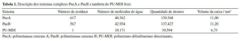 Essas duas esterases PueA e PueB foram objetos de estudo in silico do grupo de pesquisa17 ao qual o autor está inserido mostrando por meio dos resultados do docking e da MD interações favoráveis e boa estabilidade com o PU-MDI. Por outro lado, essas esterases também foram objeto de estudo in situ em que os resultados apontaram atividade catalítica de ambas na presença do PU.18 Nesse sentido, o objetivo dessa pesquisa, com base nos conhecimentos estruturais e dinâmicos prévios a respeito destes sistemas, é propor e estudar o mecanismo de degradação do PU pelas enzimas PueA e PueB usando as técnicas de química computacional supramencionadas.