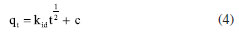 The intra-particle diffusion model holds significant importance in investigating the diffusion properties of particles in various environments, thereby facilitating a comprehensive understanding of internal diffusion processes within particles, examining particle-environment interactions, and comprehending particle transport characteristics across diverse settings. By delving into the intricacies of the intra-particle diffusion model, we can unravel the underlying mechanisms and governing laws that dictate material transfer within particles. This comprehensive study provides a robust theoretical foundation and practical guidance for industrial processes such as particle transportation and processing. The formula representing the intra-particle diffusion model is provided below. ![]() The results obtained from the intra-particle diffusion model are presented in Figure 11 and Table 3. The higher intercept values indicate a greater influence of surface diffusion compared to intra-particle diffusion. Significant R2 values suggest that the rate-limiting step in this process is external surface adsorption. Deviation of the line from its origin and a gradual adsorption stage with low R2 imply the presence of additional factors constraining the rate, beyond intrapellular diffusion. This observation provides valuable insights into comprehending the underlying mechanism governing this adsorption process.