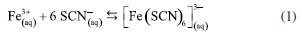 Análise espectrofotométrica Para a determinação de ferro nas chapas de aço-carbono 1020, realiza-se a análise espectrofotométrica, baseando-se nas metodologias de Adams12 e Skoog et al.13 Para a preparação da solução destinada à quantificação de Fe3+ nas chapas, deve-se iniciar o procedimento separando béqueres contendo soluções de ácido clorídrico 0,1 molar. Para cada chapa, ambas as faces são raspadas e as raspas são transferidas para béqueres exclusivos para cada chapa, contendo 80 mL de solução de HCl. O material é agitado para promover a dissolução dos sólidos e a solução resultante é filtrada utilizando-se funil e papel filtro. Em seguida, as soluções são transferidas para balões volumétricos de 100 mL e completa-se o menisco com solução de KSCN 0,1 molar. A solução final é colocada em uma cubeta e levada ao espectrofotômetro, sendo realizadas as análises em triplicata para cada amostra.12,13 Com a adição do tiocianato de potássio, a solução, até então incolor, deverá se alterar para tons avermelhados ou amarronzados devido ao deslocamento da seguinte reação para a direita, como demonstrado na Equação 1, quando em excesso de íon tiocianato, promovendo a formação de tiocianato de ferro III, substância essa que será lida no espectrofotômetro.12 ![]() A varredura foi feita entre 400 e 500 nm, faixa de comprimento de onda determinada pelos autores com base nos estudos de Adams,12 utilizando cloreto férrico (FeCl3), concluindo-se que a melhor faixa de nanômetros seria a de 440. Posteriormente, a curva de calibração foi realizada a partir dos padrões de 12, 14, 16, 18, 20 e 22 mg L-1, as quais foram medidas no espectrofotômetro a um comprimento de onda de 440 nm. Com esses dados, é possível construir um gráfico de absorbância em função da concentração e traçar uma linha de tendência. A partir dessa linha de tendência, é possível determinar a concentração de Fe3+ nas amostras desconhecidas medindo sua absorbância e utilizando a equação da linha de tendência para calcular sua concentração.