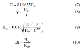 In this study, a decline in Tg1 value was observed with the consecutive addition of Ho3+ content. This may be attributed to the disparity in bond enthalpy values. Replacement of P-O having high bond enthalpy value with HO-O molecules possessing low bond enthalpy value reduced Tg1 value. Meanwhile, both Tg2, Tc, Tm and Tx values increase simultaneously. However, according to the golden rule of calorimetry, the value of the thermal stability must be greater or equal to 100 ºC.35 Undeniably, our produced glass ceramics divulged better values of S ranging from 236 to 156 ºC which is obviously > 100 ºC. Besides, holmium ions free sample coded H0.0 disclosed higher value of S than the H0.5 and H0.8 samples. This implied that H0.0 glass ceramic is more stable than its counterpart. The present findings harmonized with existing calorimetry parameters on other glass and glass-ceramics systems presented in Table 2. Apart from the S feature, the glass ceramic stability potential was further verified through Hruby's, Weinber, Liu and Liu as well as Du models and achieved data are listed in Table 2. Apparently, the thermal stability values evaluated via the aforementioned models are found to be less 3 which further assert good thermal stability of our investigated glass ceramics. Mechanical properties The microhardness of as-produced glass-ceramics was ascertained by using micro indentation hardness testing systems. Following the standard procedure earlier described in the Experimental section together with an in-depth protocol reported in the literature,36,37 the hardness value was deduced by employing the following classic equation of Vickers geometry: ![]() where HV is the Vickers hardness number in kg mm-2, P is the normal load in kg, and d is the average diagonal length of the indentation in mm. Furthermore, other impressive mechanical derivatives including Young modulus (E), yield strength (Y), fracture toughness (KIC) and brittleness index (BI) were also calculated as follows: ![]() where E denotes elastic modulus, P is the load applied, and c is the crack length measured from the center of the indent. Considering the above formulations, the microhardness (HV), elastic modulus (E), yield strength (Y), indentation fracture toughness (KIC) and brittleness index (BI) of the present glass-ceramics have been evaluated and are enlisted in Table 3. However, the typical image of the indentation impression of H0.5 glass-ceramic sample observed under optical microscope is presented in Figure 8. Evident from Table 3 unveiled that the value of microhardness decreases with Ho doping regime. This declaration is attributed to the impurity phases and irregular grain orientation distribution within the structure of present GC. Besides, E, Y, KIC and BI values decrease meaningfully with increasing Ho doping. The reason behind this is because the aforementioned parameters are highly dependent on the hardness values.36 The matching result reported herein with those attained in similar systems; Bi1.75Pb0.25Sr2Ca2Cu3−xSnxO10+y superconductor ceramics,37 undoped and Ru doped BSCCO glass ceramic38 and MgO/Al2O3/SiO2/ZrO2 glass-ceramics39 is compiled in Table 3.