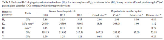 | Evaluation of thermal and mechanical properties of ZnSO4-B2O3-P2O5-Ho2O3 glass-ceramics |
