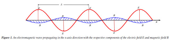 METHODOLOGY This section explores the interaction between electromagnetic waves and infrared radiation in one-dimensional (1D) linear crystals with a diatomic basis, using the classical harmonic oscillator model. The absorption of infrared radiation in ionic crystals and the significance of the molecular dipole moment at infrared frequencies are discussed. Elements of quantum mechanics are also introduced, comparing classical predictions with quantum results for radiation absorption. The objective is to assess the applicability of theoretical models to the behavior of crystals under infrared excitacion where reasonable quantitative results can be obtained. Electromagnetic wave and infrared radiation The wave type of interest in molecular vibrations are the electromagnetic waves. According to Atkins and de Paula,6 the functions that describe the electric field E = E(x,t) and the magnetic field B = B(x,t) propagate along the x direction with wavelength λ and frequency n, both perpendicular to the direction of propagation. Figure 1 shows an electromagnetic wave propagating in the x-axis direction with the two components of the electromagnetic field.