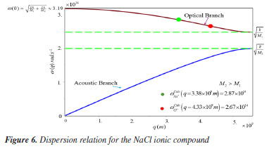 we have (q = 3.38 × 109 m) = 2.87 × 1014 rad s-1, the frequency = 4.57 × 1013 Hz with the wavenumber ![]() and ![]() for the sodium ion. The frequency of the molecular vibration is The acoustic branch is associated with sound wave vibrations, typically at small values of q, whereas the optical branch involves the interaction of molecules with electromagnetic radiation, corresponding to high vibrational frequencies. Figure 6 shows the circular vibrations of the NaCl molecule with the sodium frequency and the chloride frequency, both in the optical branch of higher energies therefore, sensible to IR radiation.