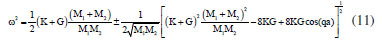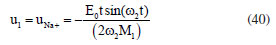 is, u1(0) = 0, ![]() and ![]() Therefore, the sodium and chloride ions oscillate in asymmetric stretching mode with the same frequency of the sodium ion and compatible with the IR radiation absorption. From Equation 26,