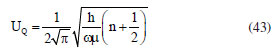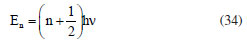 constant.7 We can consider the harmonic approximation with the LDM model, as a system formed by two independent harmonic oscillators, with frequencies ω = ω(q). Thus, for each normal mode of vibration of the ions (or atoms) in this chemical bond; the permitted absorption energies are given by Equation 34. For n = 0, E0 = According to Rodrigues,3 "if a molecule interacts with an electromagnetic field, an energy transfer from the electric field E to the molecule can only occur when the Bohr frequency condition is satisfied, i.e., ![]() that is, the differences between two energy states must be equal to hn which is the energy of classical harmonic oscillator with frequency n.3 From Equation 35, the frequency of radiation absorption or emission for a transition between two quantized states is given by ![]() The specific selection rules for a change in the vibrational state of a diatomic molecule in the IR are Δν = ± 1.6