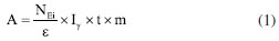 EXPERIMENTAL Construction of the radon chamber The chamber represents a human living environment. It was designed using AutoCAD 2020 (student version, Autodesk, USA). The chamber is titled indoor radon chamber (abbreviated as CamInd α-Rn). The physical construction was carried out using acrylic material, which is transparent, colorless, and rigid, with a thickness of 0.4 cm. The simulator consists of thirty-two pieces assembled using acrylic glue, with external dimensions of 60 cm in length, 43.2 cm in width, and 61 cm in height, resulting in a useful volume of approximately 158 cm3. On the floor of the simulator, a sample with high levels of naturally occurring radioactive material (NORM) was applied, where Rn was produced, emanated, and accumulated in the CamInd α-Rn. Characterization of the NORM font for use in the simulator The NORM sample used in the simulator was collected from a rocky outcrop in the city of Pedra, state of Pernambuco, Brazil, where there are occurrences of natural uranium.14,15 The sample treatment involved reducing the particle size to 1.0 mm, using jaw crushers and roller mills with different openings. Subsequently, the material was homogenized and quartered, and a 300 g aliquot was placed in a high-strength polyethylene container, hermetically sealed. A period of 21 days was awaited to favor the condition of secular radioactive equilibrium among the radionuclides with short physical half-lives. The radiometric analysis was conducted using a high-resolution gamma spectrometry system, with an HPGe-Be type detector from Canberra™, belonging to the Laboratório de Radioquímica e Análise Nuclear (LABRAN) of the Departamento de Energia Nuclear at the Universidade Federal de Pernambuco, Brazil. The detector has an active volume of 41.1 cm3, an energy resolution of 1.8 keV for 1,332 keV of 60Co, and an intrinsic relative efficiency of 25%. It was mounted in a cryostat with a maximum capacity of 30 L of liquid nitrogen. The system was coupled to a multichannel analyzer (MCA) with 4,096 channels, Eagle Plus model (Canberra™, USA). The operating voltage of the preamplifier was set at 3 kV. The Genie-2k™ software, version 1.0 (Canberra™, USA), was used to acquire and process the data. To avoid interference from laboratory background radiation, the detector was enclosed by lead shielding, with a thickness of 6.5 cm and a weight of 600 kg, with an additional thin internal surface comprised of layers of Cd and Cu to minimize the effect of scattered radiation. The specific concentrations, A, in Bq kg-1, were determined by Equation 1, where NEI corresponds to the total net area of the gamma transition of interest (counts); ε represents the counting efficiency per energy; t is the counting time (s); Iγ is the gamma abundance of the radionuclide; m is the mass of the sample (kg). ![]() The 238U was determined by the gamma transition of 63.29 keV from 234Th; the 40K by the gamma of 1,460.86 keV; the 226Ra by the energies of 351.92 keV from 214Pb and 609.31 keV from 214Bi; and the 232Th by the transitions of 583.19 keV from 208Tl and 911.21 keV from 228Ac. The activities of 226Ra and 232Th were weighted, A-, by Equation 2, considering the characteristic transitions of each radionuclide and their respective emission probabilities. ![]() In Equation 2, A1 and A2 correspond to the specific activities initially calculated by Equation 1; γ1 and γ2 are the emission probabilities for each gamma transition. The analysis time for the sample was standardized at 84,600 s, and it was positioned 8 cm from the HPGe detector. To minimize uncertainties, the background of the container and the laboratory were measured considering the same conditions as the sample measurement. Gamma spectrometer calibration in energy and efficiency In the energy calibration, an experimental arrangement was used to apply sealed and certified point source standards of 133Ba, 137Cs, and 60Co. These sources emit gamma radiation from 81.0 to 1,332.5 keV, matching the energy range of the radionuclides of interest in the environmental matrix. The sources were positioned on the surface of the detector without barriers and with adjusted dead time. They were measured individually for 300 s, considering the activities and counting statistics. After the acquisitions, the MCA channels were adjusted using the Genie-2k® software from Canberra®, based on the technical document TECDOC-619 from the International Atomic Energy Agency.16 Primary open sources of 133Ba, 152Eu, and 241Am with certified activities were used for efficiency calibration. Secondary standards were prepared in matrices similar to the NORM sample, then stored individually in high-strength polyethene containers and doped with open sources. Thus, secondary standards in a solid matrix were constructed, sealed and analyzed under similar conditions. The energy efficiencies, ε, were calculated after the acquisitions and analyses of the gamma spectra using Equation 1.16 CamInd α-Rn monitoring and certification systems To measure the radon concentration inside the CamInd α-Rn, a mass of 4.48 kg of NORM material was placed on the chamber floor, filling the entire base compartment. Passive detectors, α Espec-222, and active detectors, ionization chambers, were used to monitor this gas. The passive measurement systems used to monitor and quantify the levels of 222Rn in the CamInd α-Rn were the alpha spectrometers, α Espec-222, consisting of an air diffusion chamber and CR-39. The passive spectrometer was developed in the work of Santos et al.,17 which also describes the calibration performed at the Laboratório de Serviço de Monitoração Ambiental (SEAMB) of CRCN-NE/CNEN. Thirteen spectrometers were installed at different heights to measure the radon concentration in the CamInd α-Rn, with exposure periods of 36, 40, and 60 days, determined based on the radioactivity level of the NORM sample to prevent device saturation. Following the exposures and
