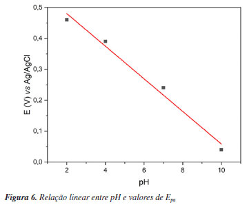 Esta conclusão é suportada pelas equações experimentais (-0,053pH + 0,58, R2 = 0,99), que apresentaram valores de inclinação próximos ao teórico de 0,059 V por unidade de pH, conforme previsto pela equação de Nernst (Equações 2 e 3). ![]() A 25 ºC e com as constantes resolvidas: ![]() Esse é o primeiro relato sobre o potencial antioxidante de S. multijuga por meio de processos eletroquímicos.