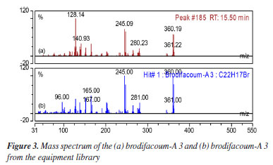 RESULTS AND DISCUSSION Brodifacoum-A 3 identification Under the chromatographic conditions described, the chromatogram with the degradation products of brodifacoum is shown in Figure 2.