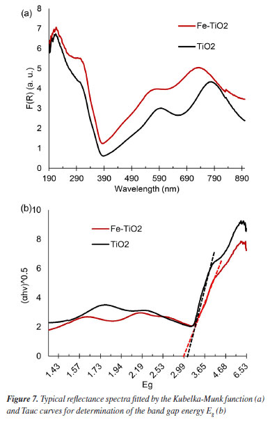 Thus, the growth of nanotubes is compromised by the low availability of F-. The reflectance spectra fitted by the Kubelka-Munk function are presented in Figure 7a. The fitted reflectance data were used to determine the band gap of the samples through the Tauc curves considering the indirect allowed phase transition for TiO2 (Figure 7b).